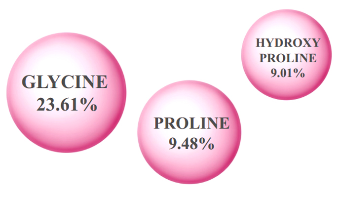 คอลลาเจน พบได้ทั่วไปในโครงสร้างร่างกาย เช่น เอ็น กระดูก และผิวหนัง โดยโครงสร้างเป็นเกลียวของคอลลาเจนนั้นประกอบขึ้นจากกรดอะมิโน 18 ชนิดซึ่งกรดอะมิโน 3 ชนิดได้แก่ Glycine, Proline และ Hydroxyproline และโมโนเปปไทด์คอลลาเจน จากวิซคอลล่า มีสัดส่วนของกรดอะมิโน 3 ชนิดนี้สูงถึง 42% ที่จะช่วยกระตุ้นให้ร่างกายเกิดการสร้างคอลลาเจนมากขึ้น